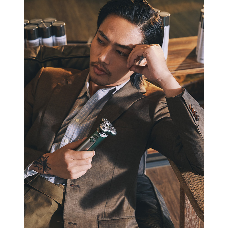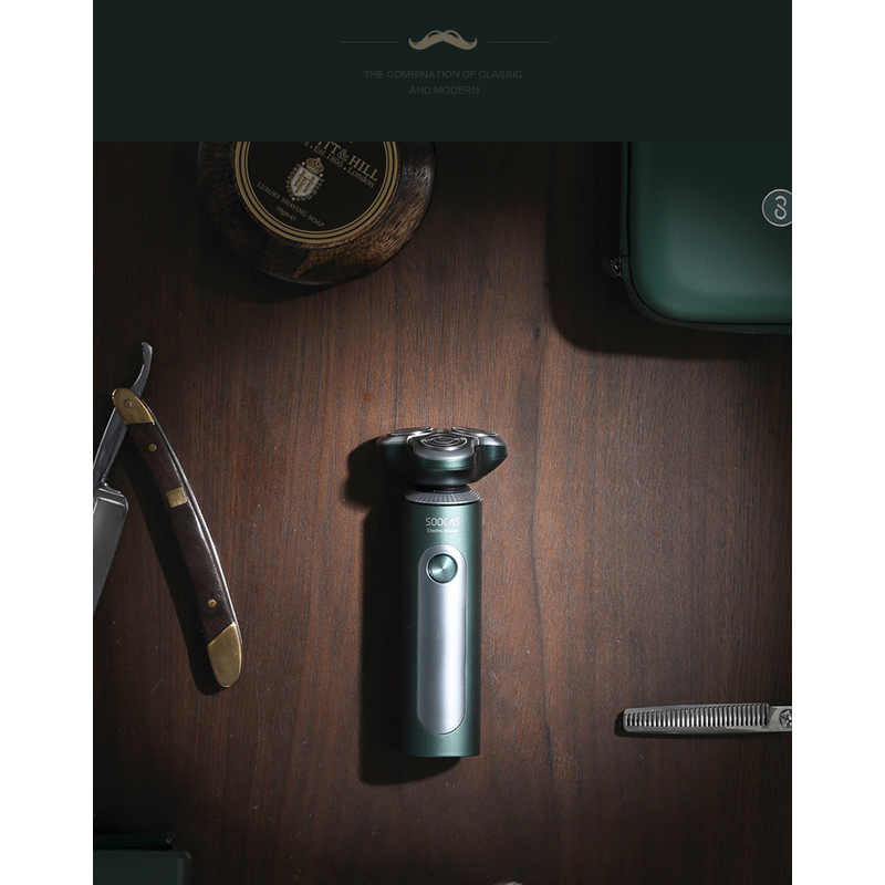 The package contains: Razor / cutter head protective cover / sideburns / cleansing brush / nose hair trimmer / charging cable / cleaning brush