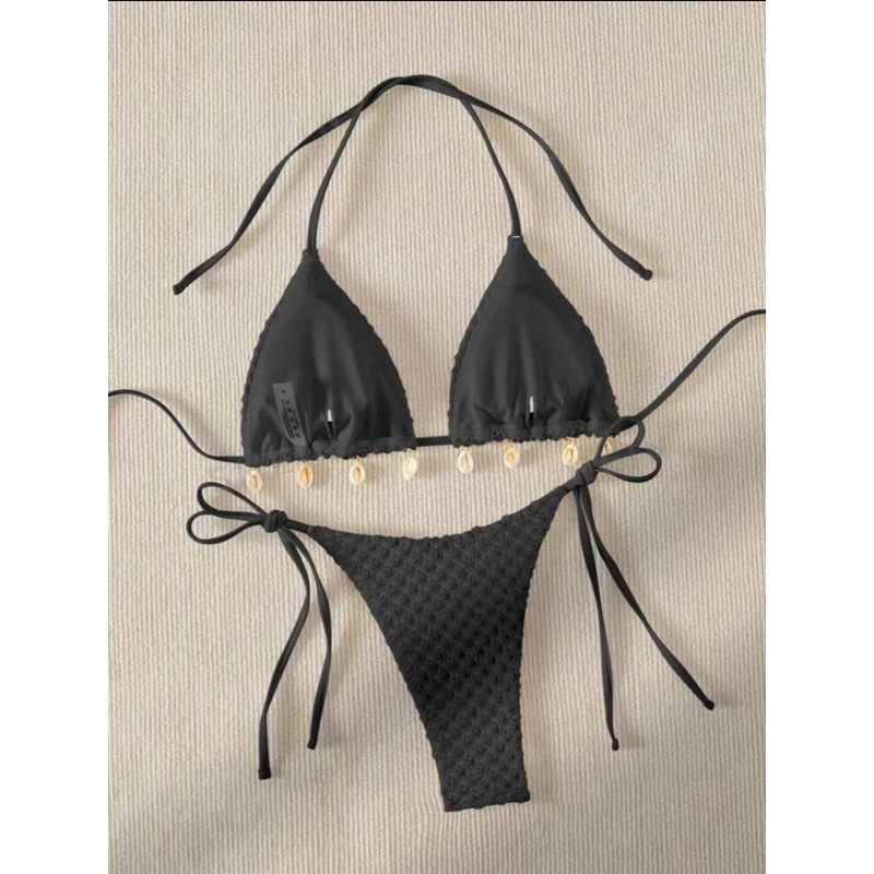 Special Fabric Split Swimsuit Swimwear Women's Outer Single Sexy Black S