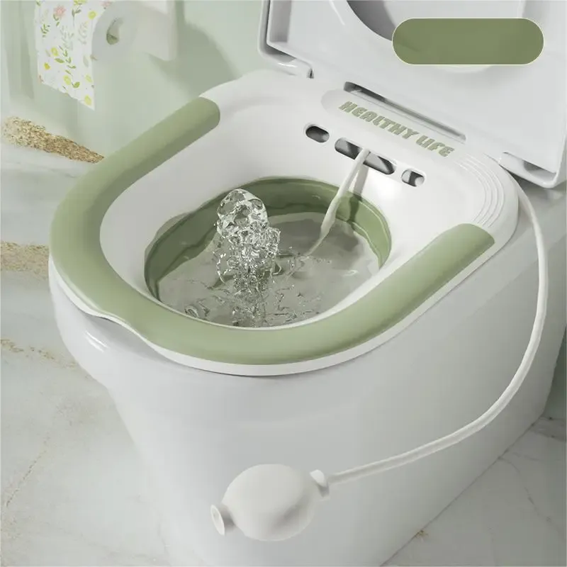 This folding sitz bath basin is specifically designed for pregnant women and hemorrhoid patients.With practical design and functions, it offers a comfortable and convenient sitz bath experience to assist with intimate care and relieve discomfort.