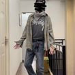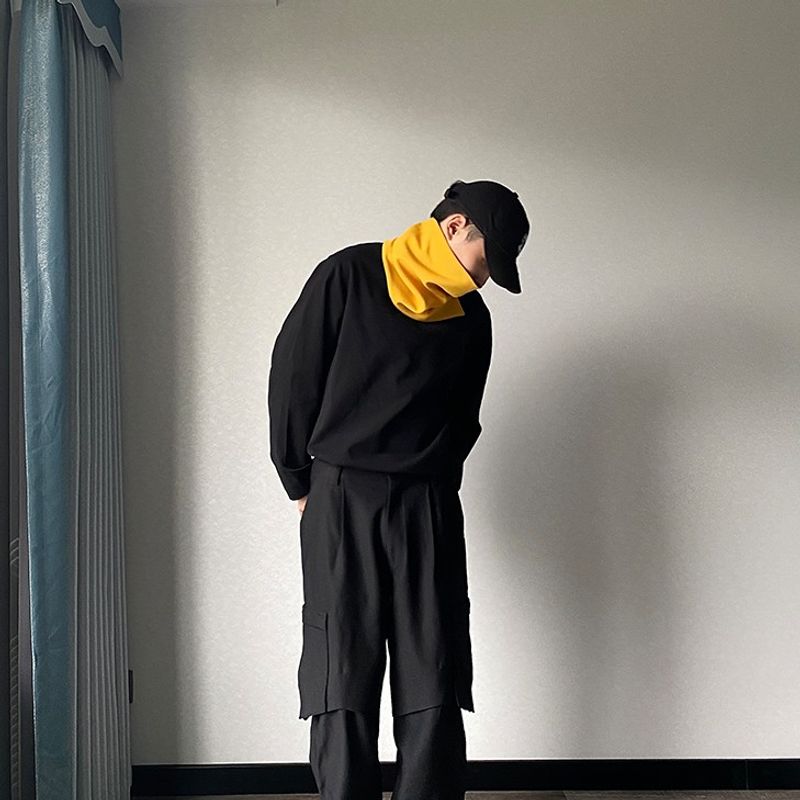 Collar type: stand collar color: light gray, Ginger yellow, black