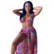 Split Swimsuit Summer Bikini Three-piece Print Beach Suit Swimming Sportswear Red S