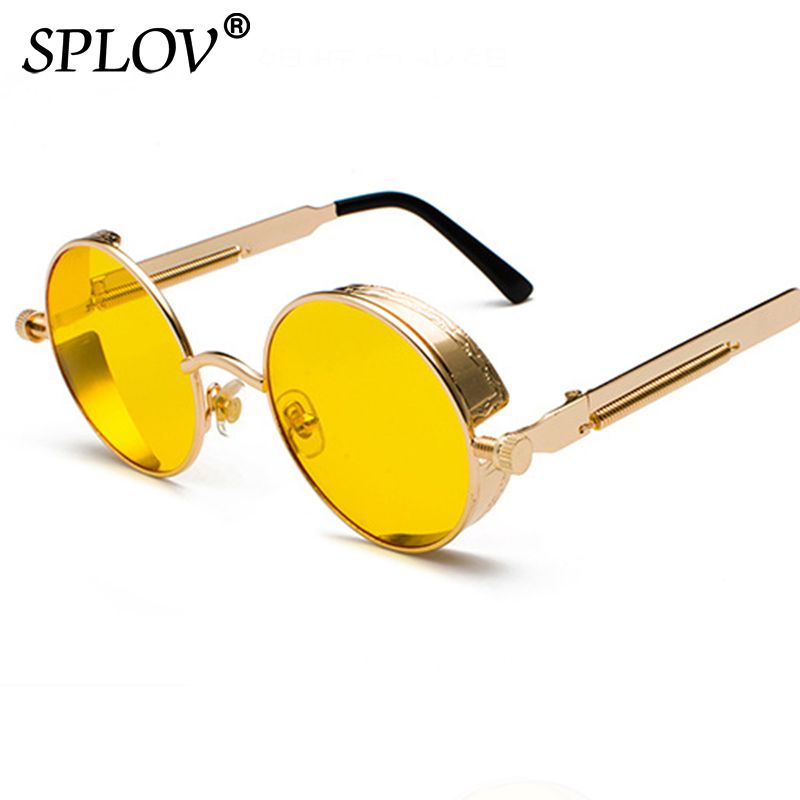 SPLOV Vintage Round Polarized Sunglasses Retro Steampunk Sun Glasses for Men Women Small Metal Circle Driving Glasses UV400