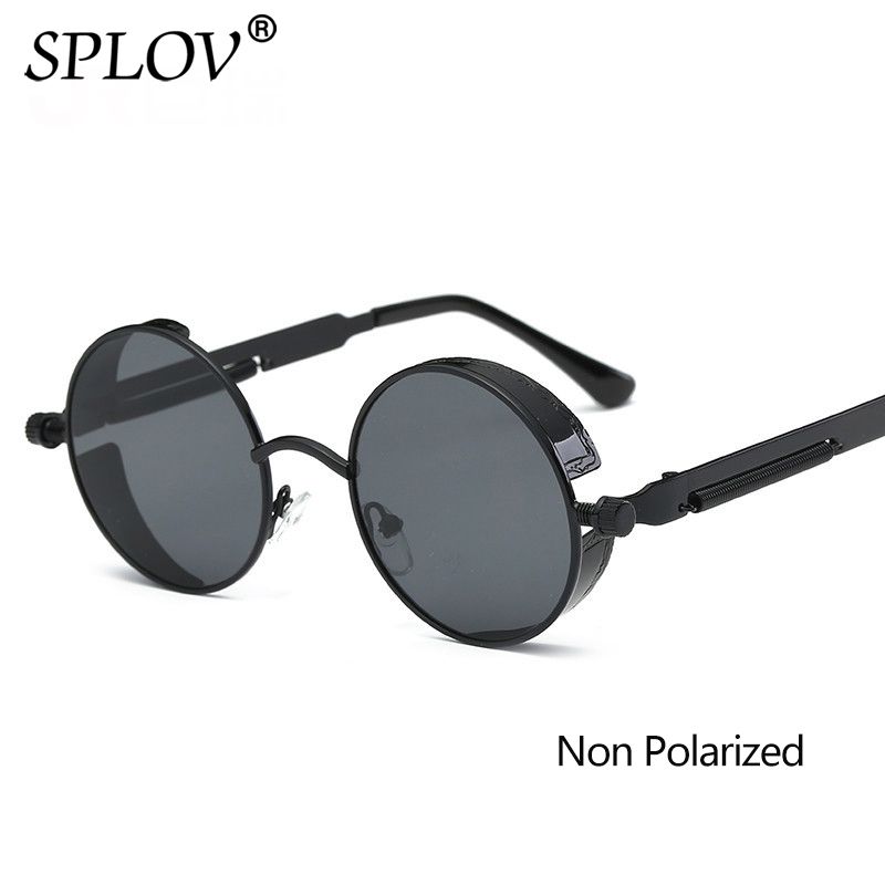 SPLOV Vintage Round Polarized Sunglasses Retro Steampunk Sun Glasses for Men Women Small Metal Circle Driving Glasses UV400