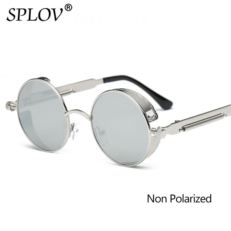 SPLOV Vintage Round Polarized Sunglasses Retro Steampunk Sun Glasses for Men Women Small Metal Circle Driving Glasses UV400