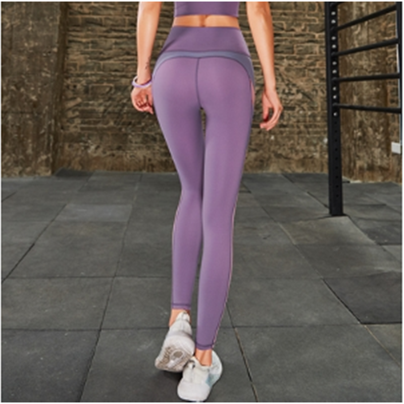 Sport Stitching Fitness Pocket Leggings Yoga Pants Purple S