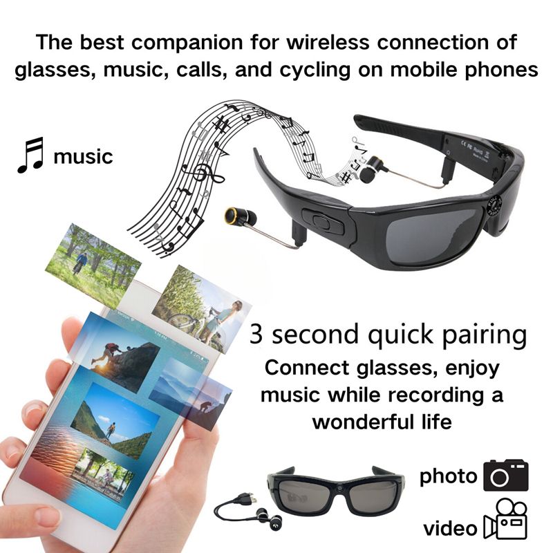 Sports Camera Glasses Sense Bluetooth Music Call Intelligent Recording Waterproof Glasses Outdoor Sports Cycling UV-proof