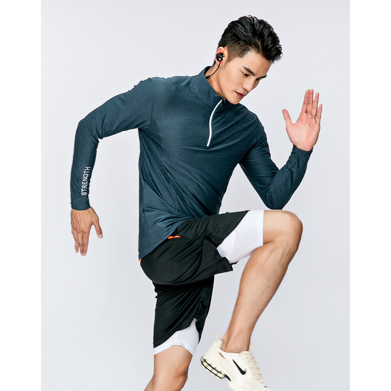 Sports fitness long sleeve men's loose, breathable and quick drying clothes Grey 4XL