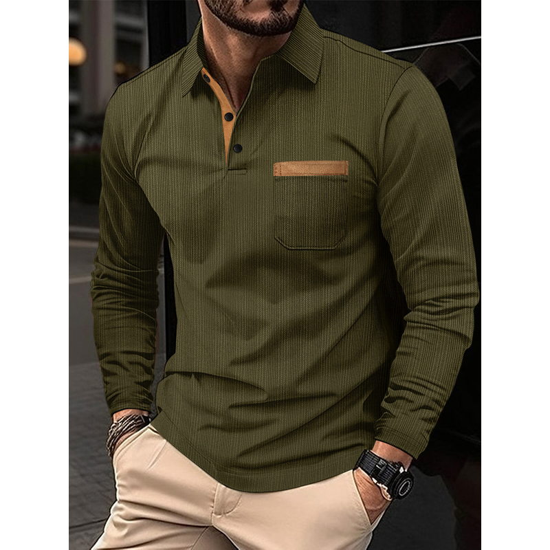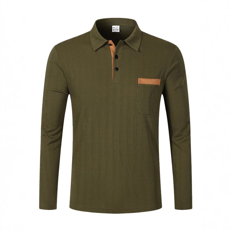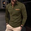 Sports Long Sleeve Lapel Men's Polo Shirt Army Green S