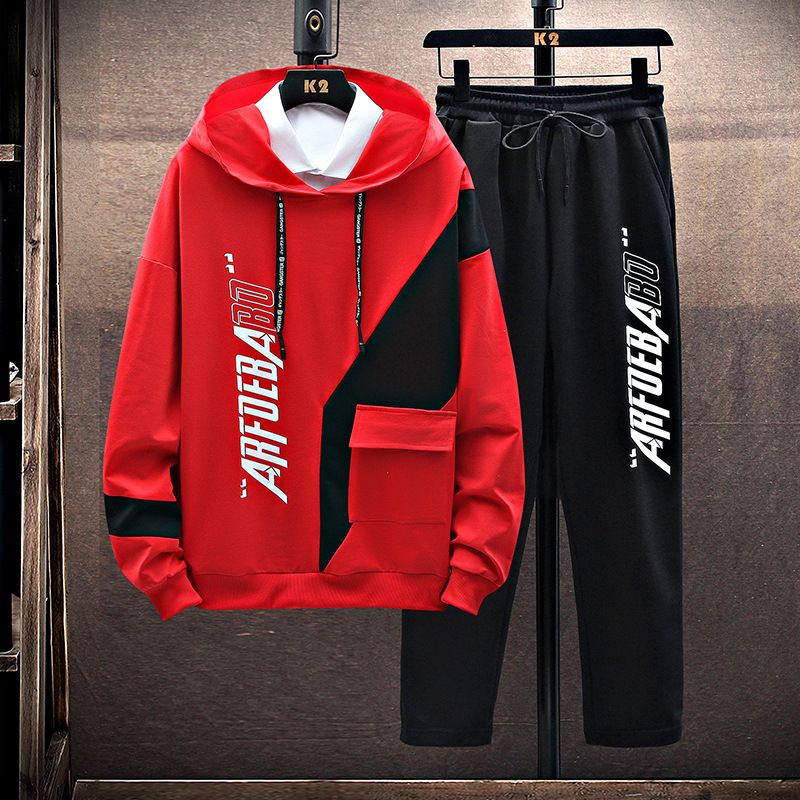 Sportswear Suit Men's Long-sleeved Trousers Casual Two-piece TZ865 white 2XL