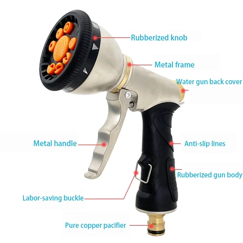 Rotary Water Spray Hose Gun Garden Watering Sprinkle Irrigation Tool Car Washer Adjustable High-Pressure Variable Flow Control