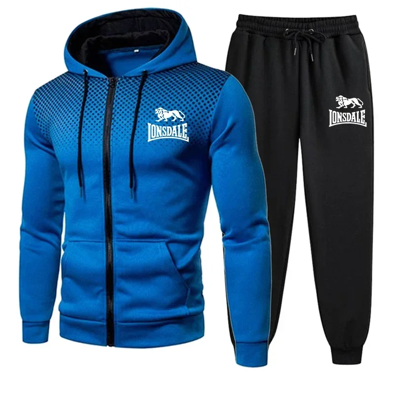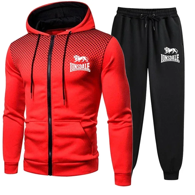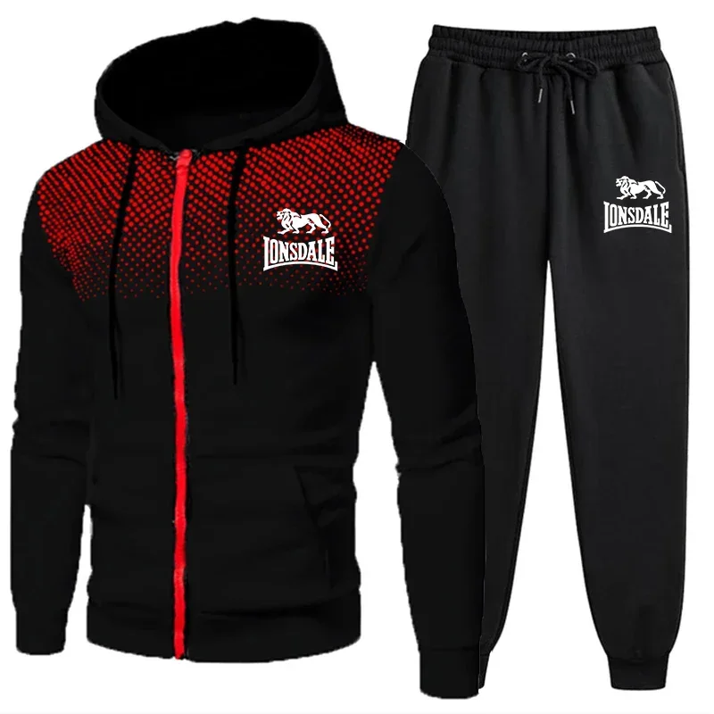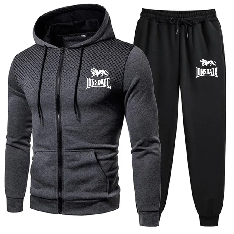 Spring and Autumn 2026 new Men's casual sportswear set, outdoor windproof and warm men's zipper hoodie + pants 2-piece set