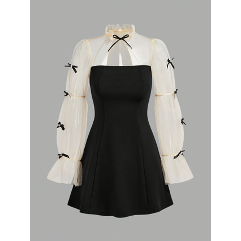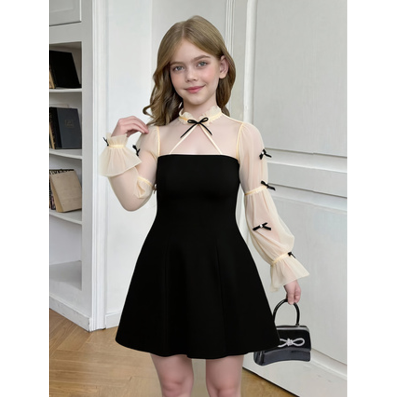 This girls' dress exudes elegance with its Hepburn-style design, perfect for spring and autumn outings.