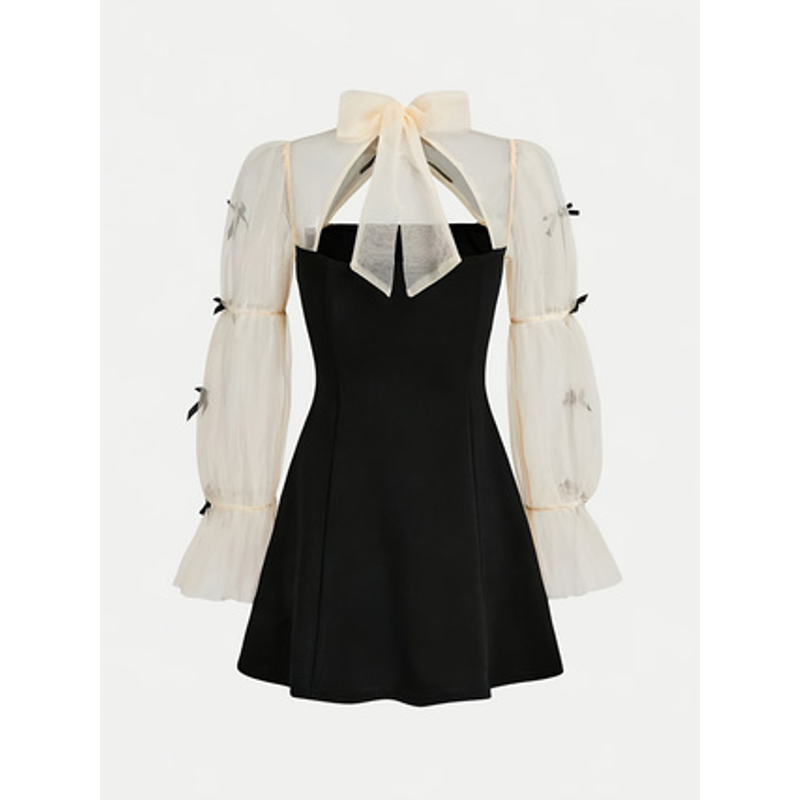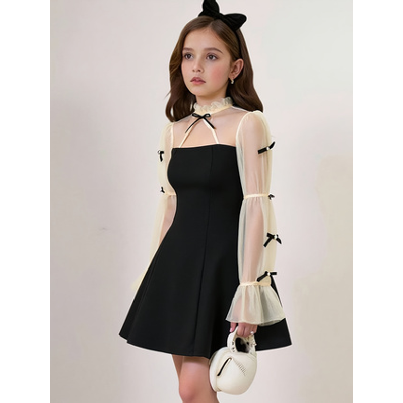 This girls' dress exudes elegance with its Hepburn-style design, perfect for spring and autumn outings.