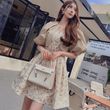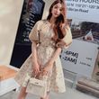Spring and Autumn French Court Style Gold Silk Jacquard Women's Handmade 3D Ruffle Design Short Coat Dress