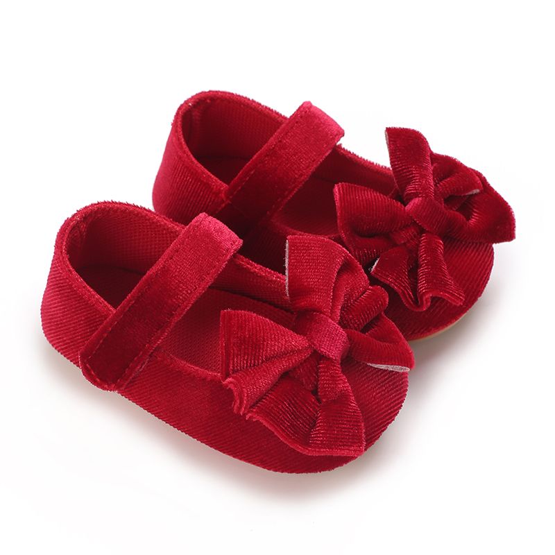 Spring and Autumn Girl Baby Shoes Classic Fashion Red Theme Cute Bow Princess Shoes Rubber Sole Anti slip Comfortable Walking Sh