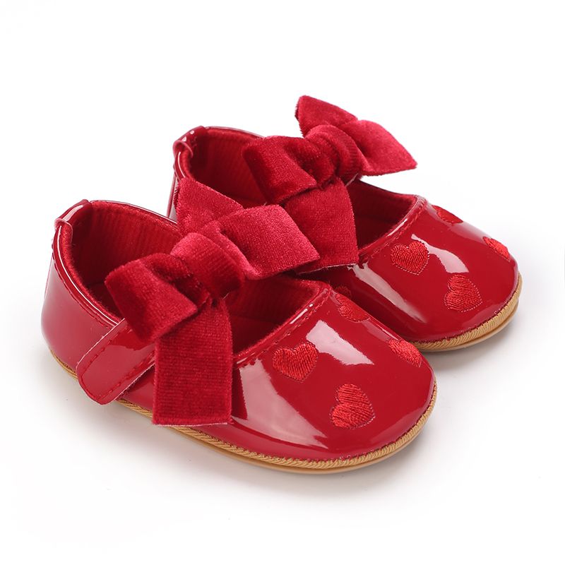 Spring and Autumn Girl Baby Shoes Classic Fashion Red Theme Cute Bow Princess Shoes Rubber Sole Anti slip Comfortable Walking Sh