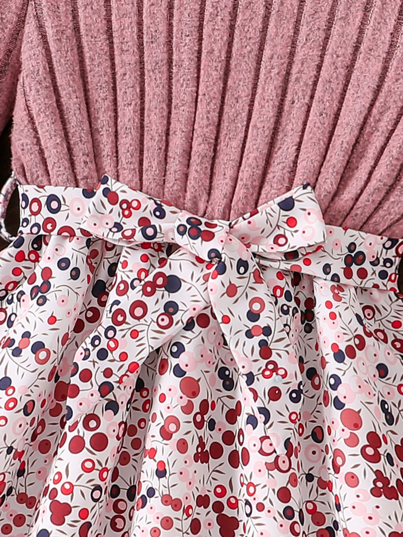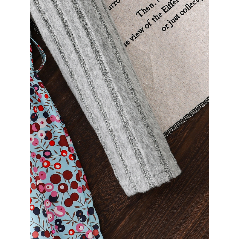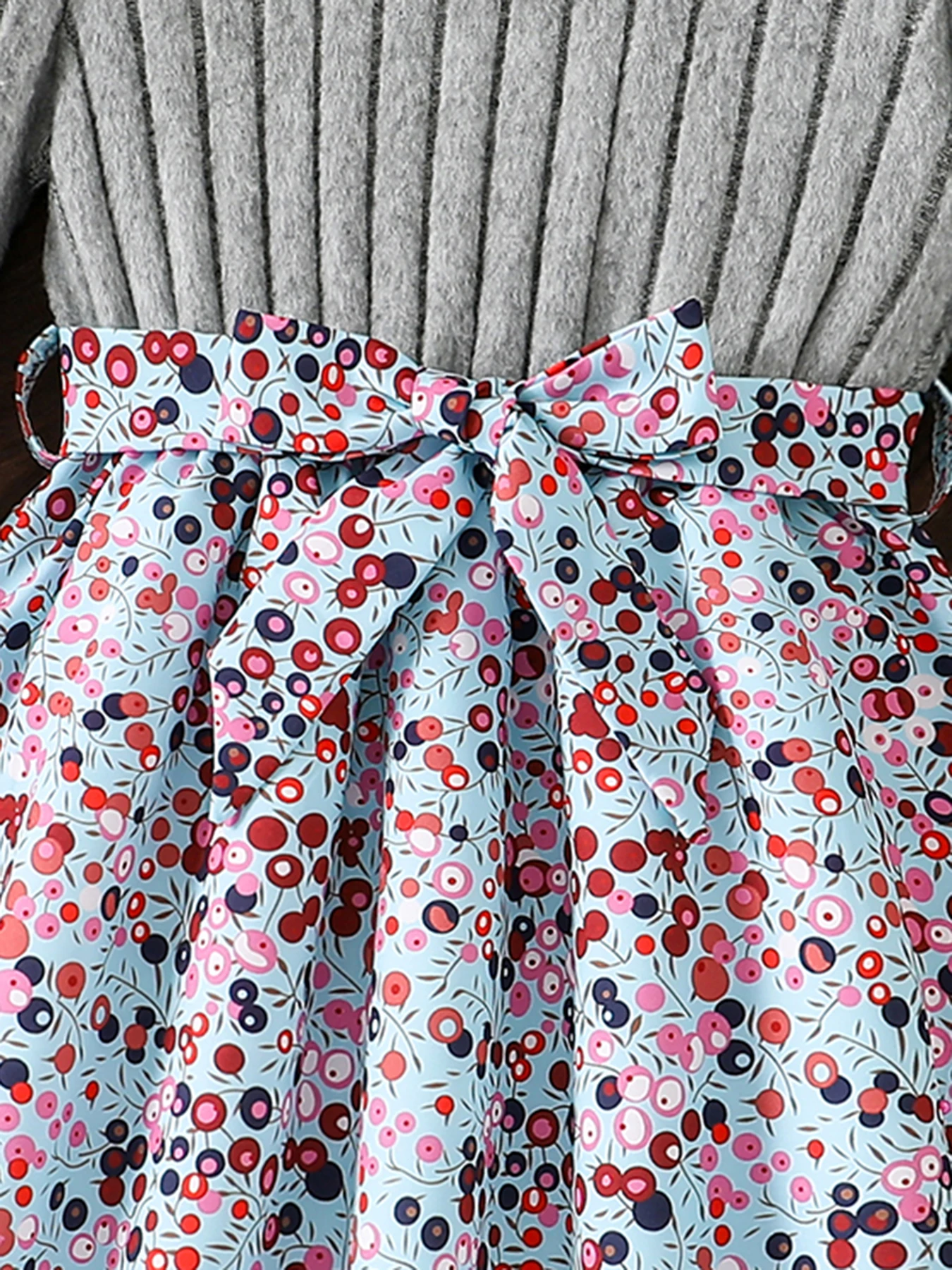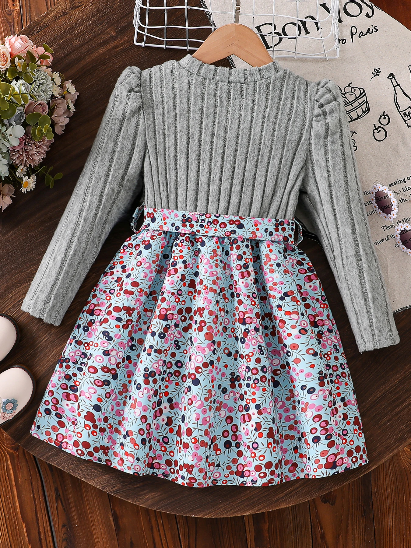 Spring and Autumn Girls' Simple Casual Versatile Knit Round-Neck Long-Sleeve Floral Dress, Everyday Casual Dress for Girls, Can Be Used as a Holiday Gift, Eid, Easter, Carnival, Chinese New Year