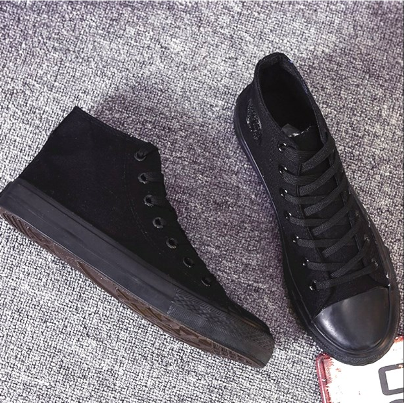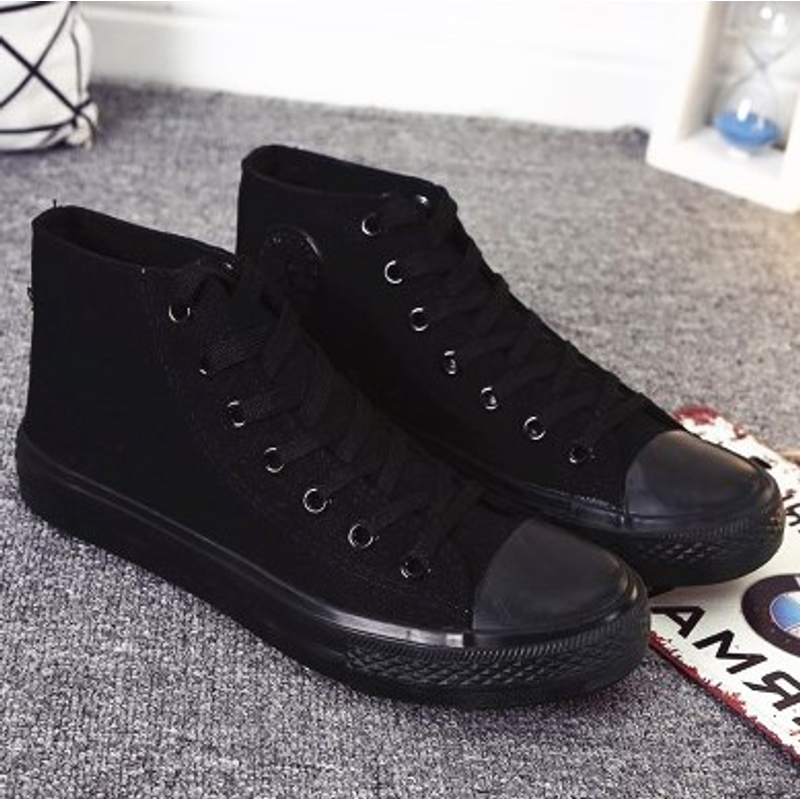 Spring and autumn men's canvas shoes students high-top flat shoes casual shoes black and white cloth shoes women couples with Korean version of the shoes Black 1 35