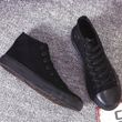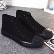 Spring and autumn men's canvas shoes students high-top flat shoes casual shoes black and white cloth shoes women couples with Korean version of the shoes Black 2 39