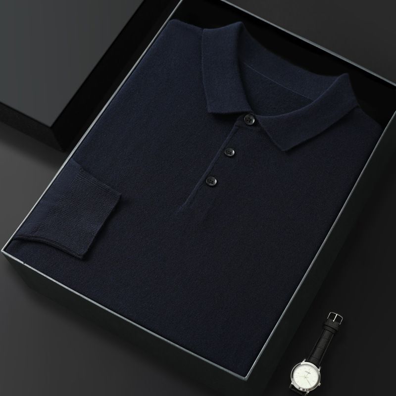 Spring And Autumn New Fashion Casual Polo Collar Long-sleeved Sweater Men Upper Cyan XXL