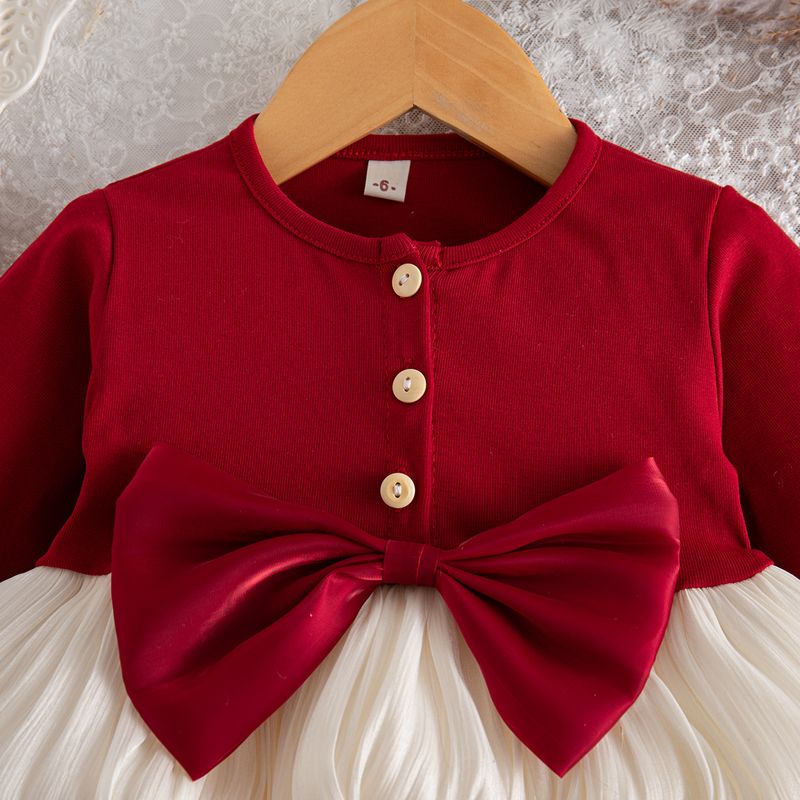 Spring And Autumn New Red Bow Baby Girl Dress, Sweet And Cute Children'S Clothing Suitable For Christmas Parties (6-24 Months)