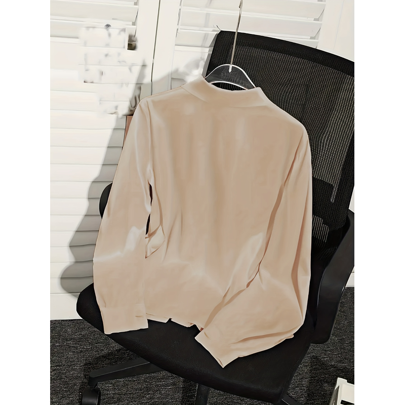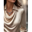 Spring and Autumn Plus-Size Long-Sleeved Satin Shirt, Round Neck with Pleated Draped Collar, Elegant and Stylish Office and Outdoor Wear Top