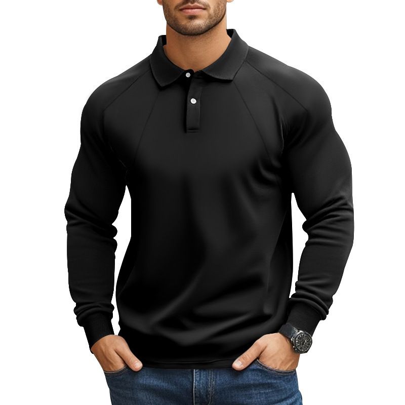 Spring And Autumn Polo Collar Solid Color Casual Bottoming American Polo Shirt Men Black S