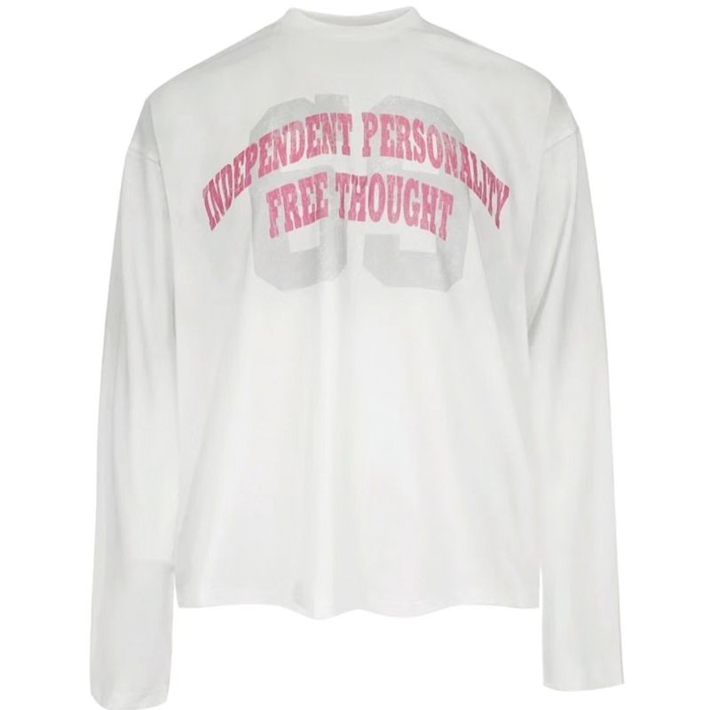 Spring And Autumn Pure Cotton Men And Women Loose Casual Top Long Sleeve White 2Style S