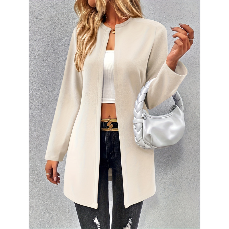 Spring And Autumn Two Seasons Women's Printed Coat Round Neck Small Suit Milky White XL