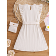 Spring and summer girls fashion vacation casual solid color round neck flying sleeve dress summer clothing + small satchel
