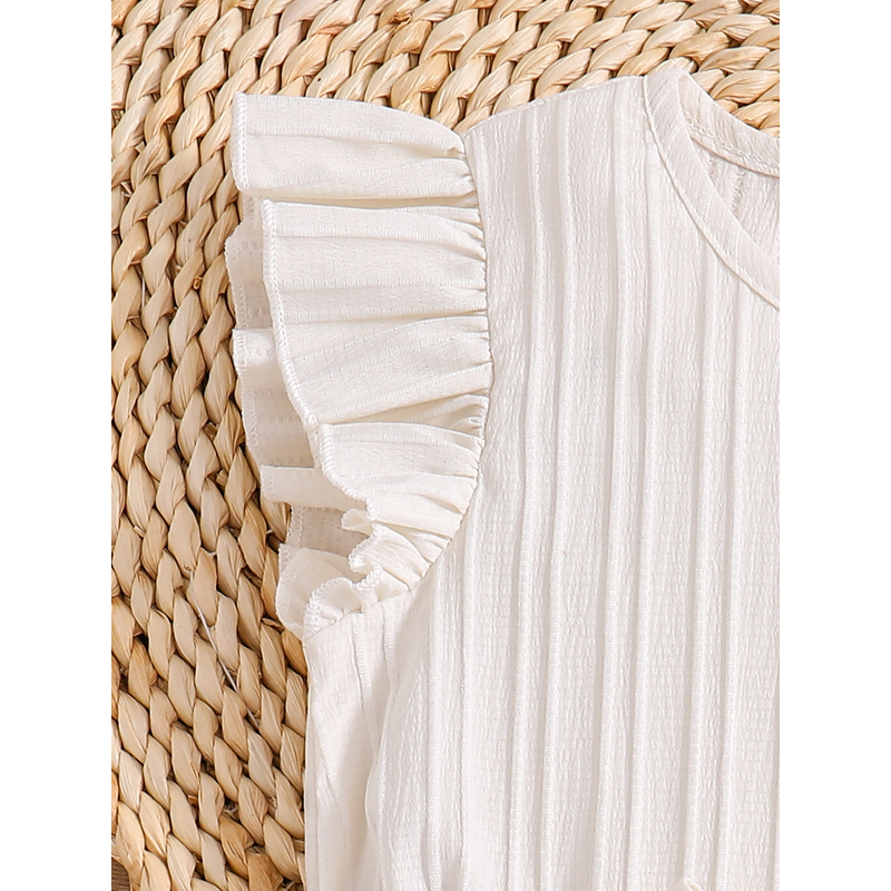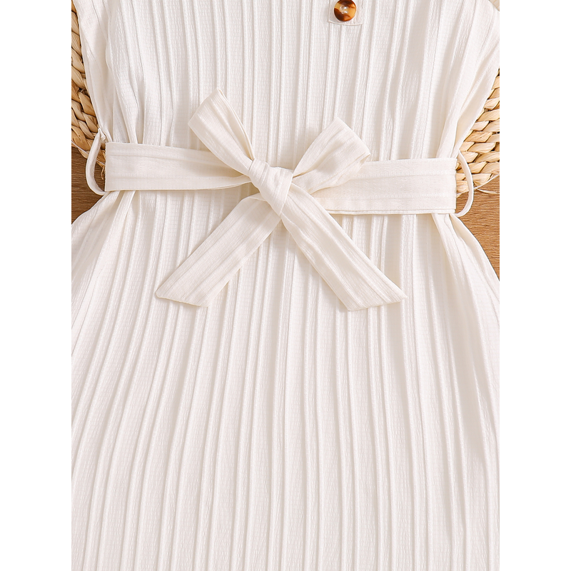 Spring and summer girls fashion vacation casual solid color round neck flying sleeve dress summer clothing + small satchel
