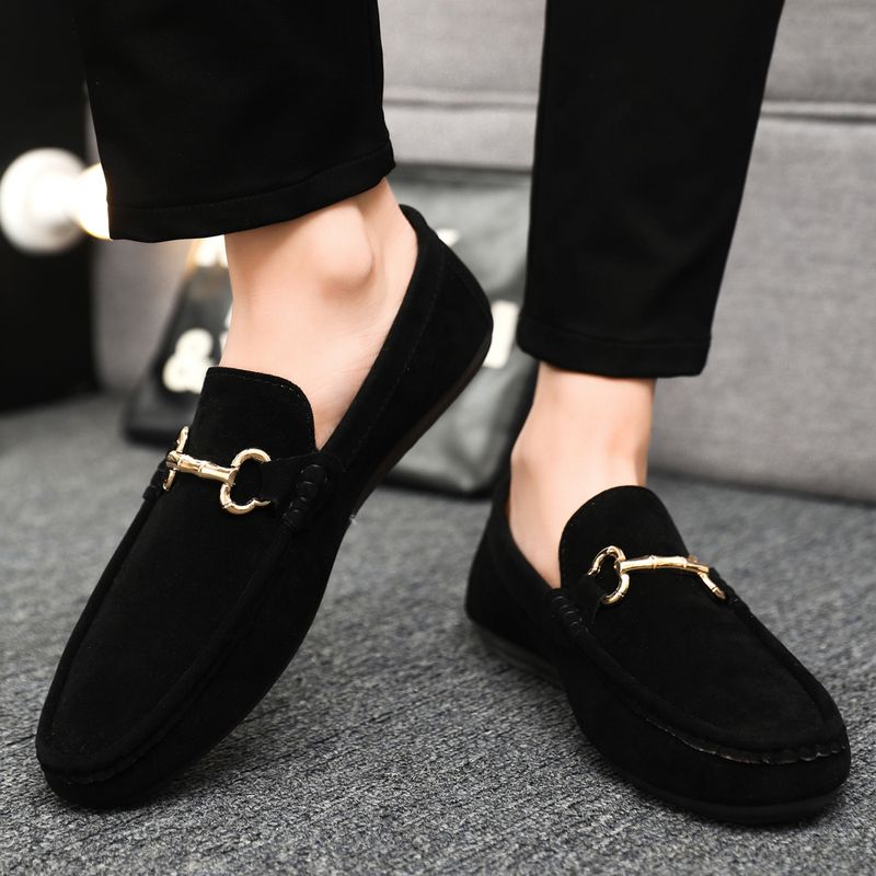 Spring and summer leisure fashion pea shoes suede horse bit buckle lazy shoes comfortable trend black work shoes