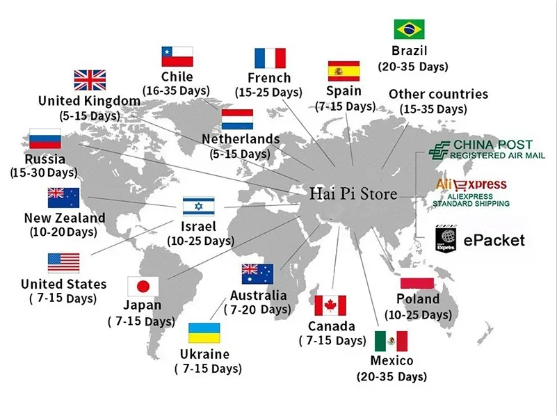 Please note that delivery times are estimates and may vary due to customs procedures, carrier delays, weather conditions, or other unforeseen circumstances.