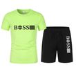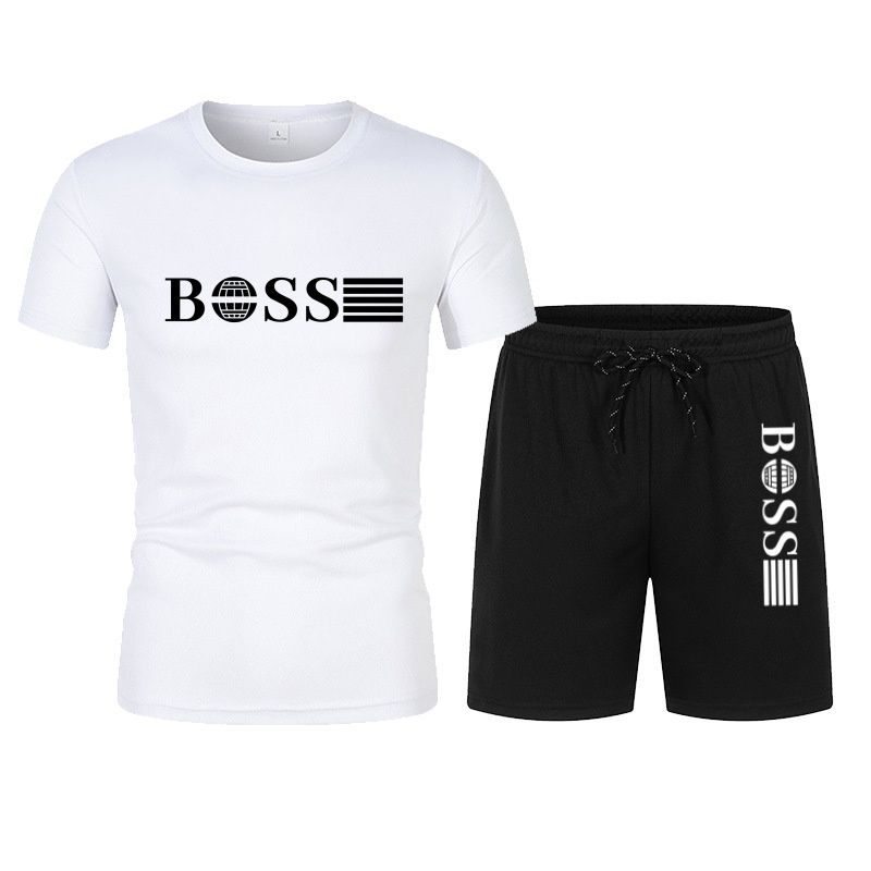 Spring and summer new two-piece men's running T-shirt and short casual elastic round neck sports suit comfortable quick drying