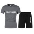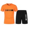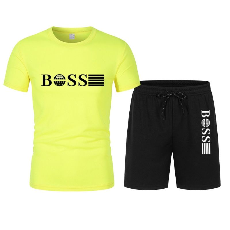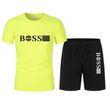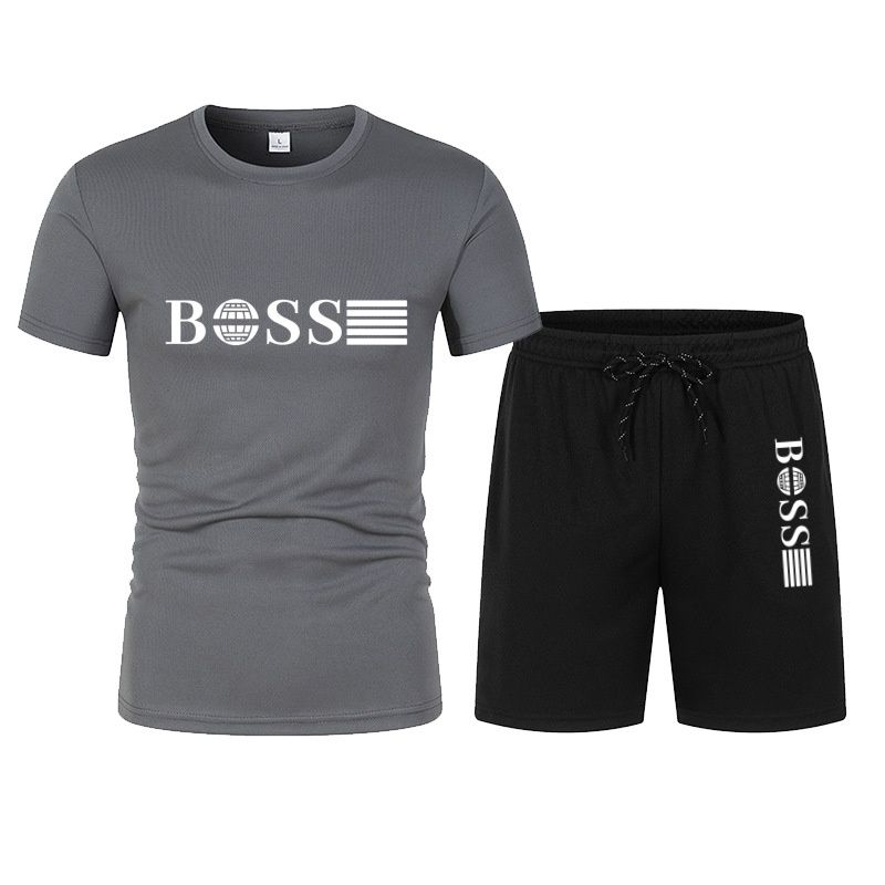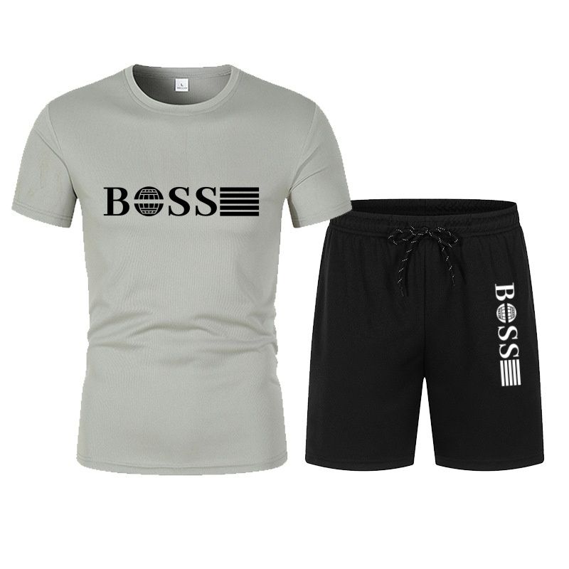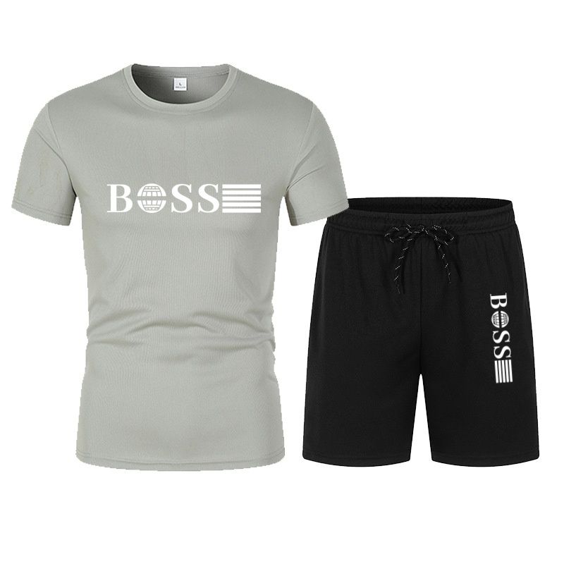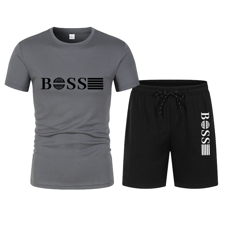 Spring and summer new two-piece men's running T-shirt and short casual elastic round neck sports suit comfortable quick drying