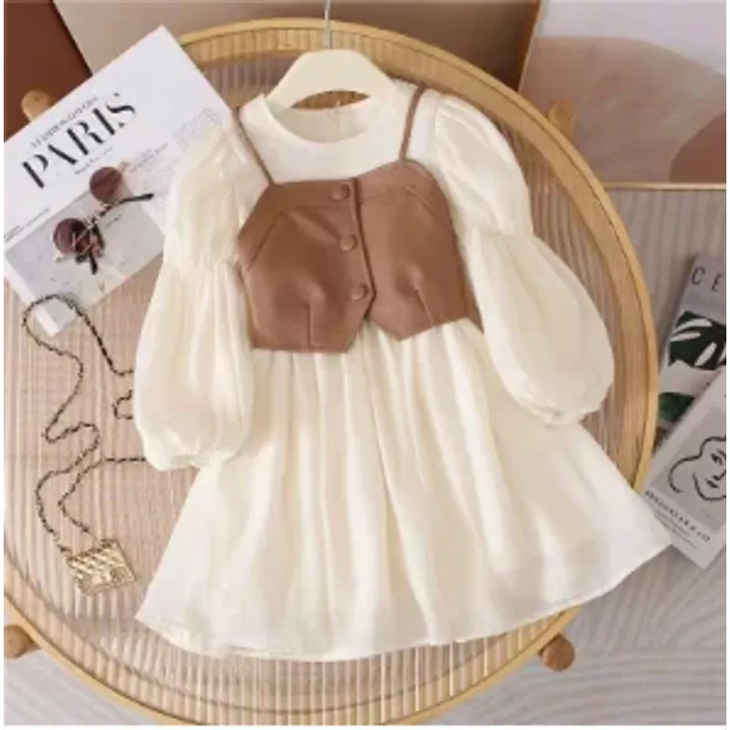 Spring Autumn Baby Suits Girl Vest + Long Sleeve Dresses 2piece Kids Cute Princess Dress Children Chiffon Vestido 2 to10T