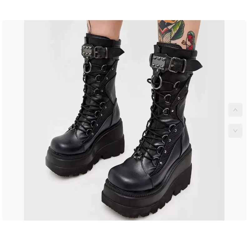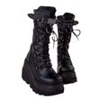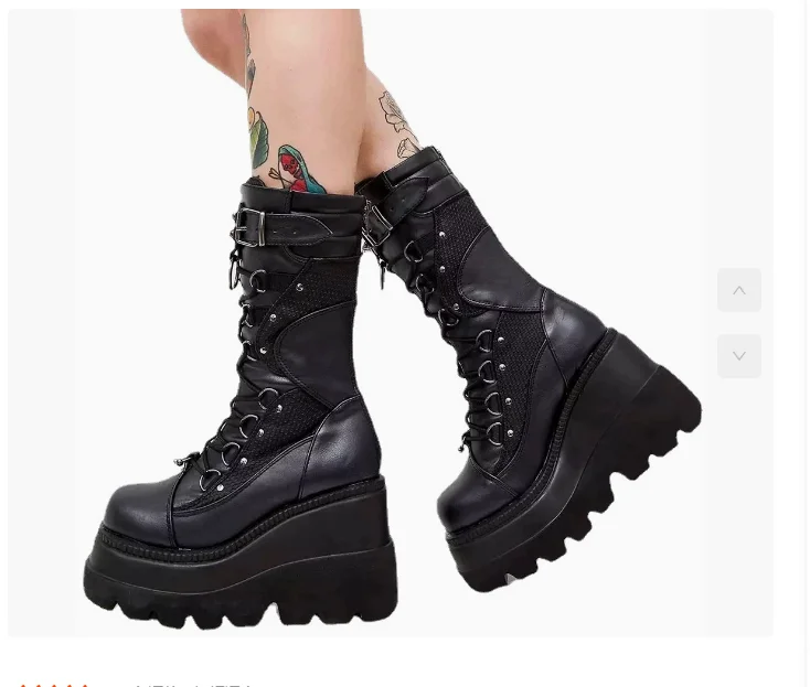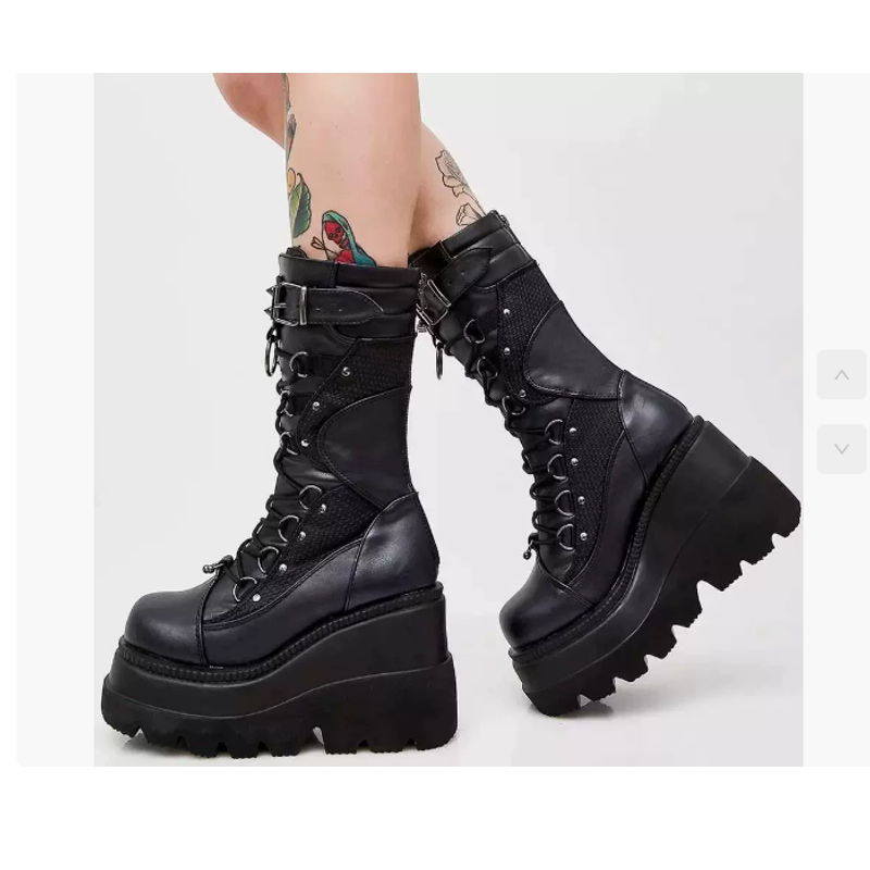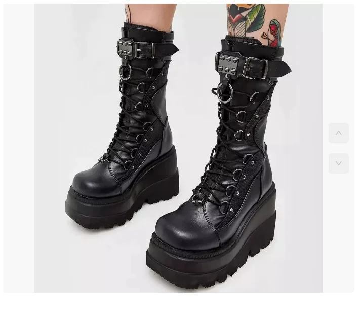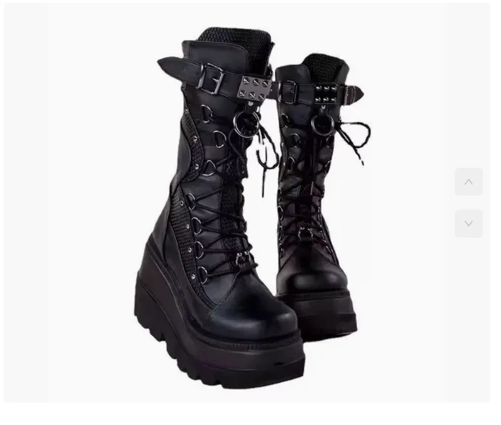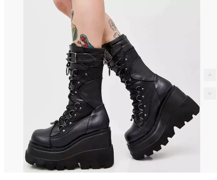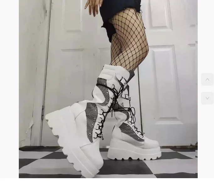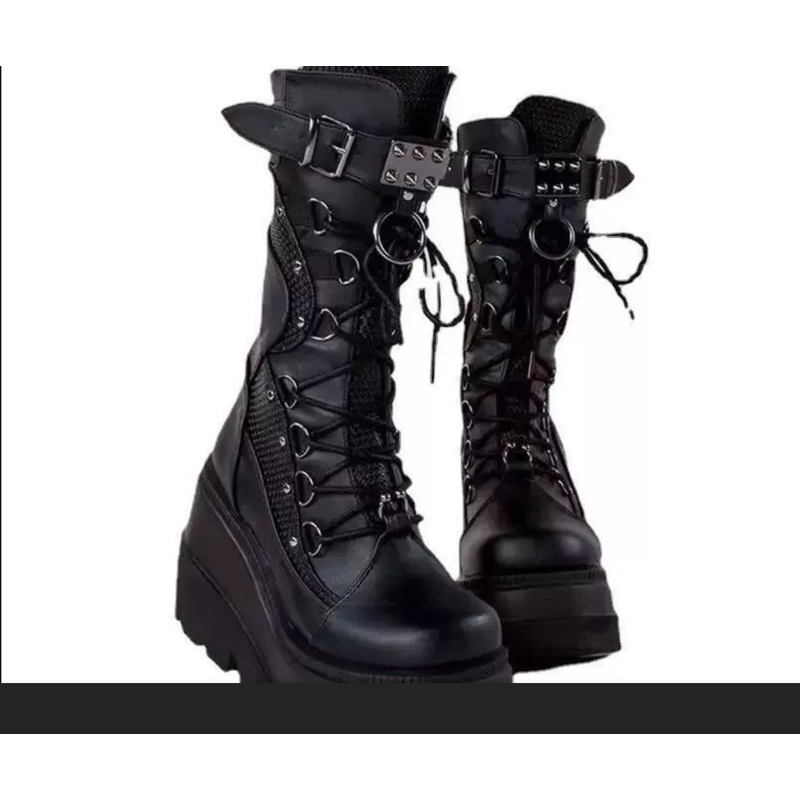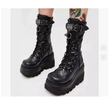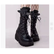 Spring Autumn Black Women Wedge Boots Platform Boots Knee High Motorcycle Boots Black Closed Toe Lace Up Long Boots Large size
