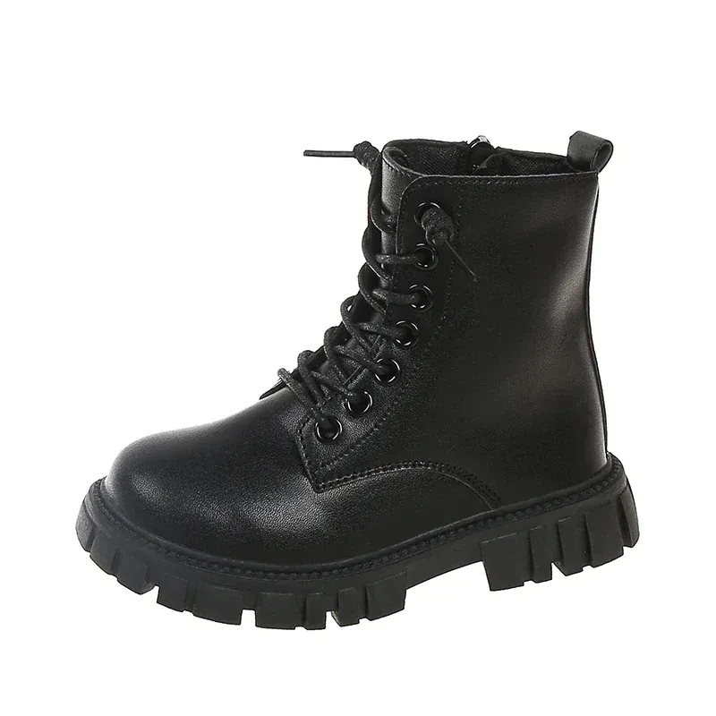 Spring Autumn Girls Ankle Boots Fashion School Kids Leather Boots Thick Bottom Non-slip Children's Platform Causal Boots Black