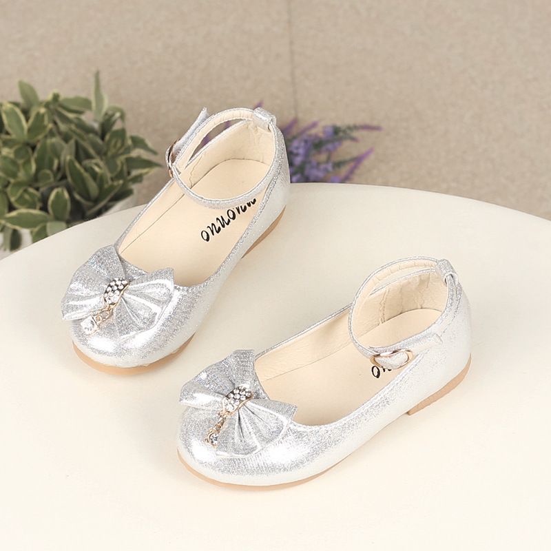 Spring Autumn Kids Leather Shoe Elegant Bowtie Girl Princess Shoes Fashion Causal Wedding Children's Flats Ankle-strap Versatile