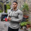 Spring Autumn Mens Running Hooded T-shirts Thin Ribbed Knitted Sports Sweaters Classic Strip Slim Gym Fitness Pullover T Shirts