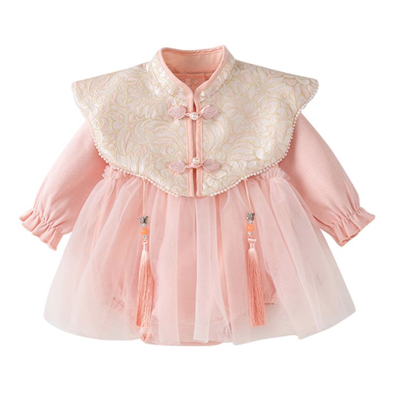 Spring Autumn Newborn Girls Clothes Fashion Chinese Style Pink Cute Mesh Long Sleeve Bodysuits & One-Pieces Baby Clothing BC083