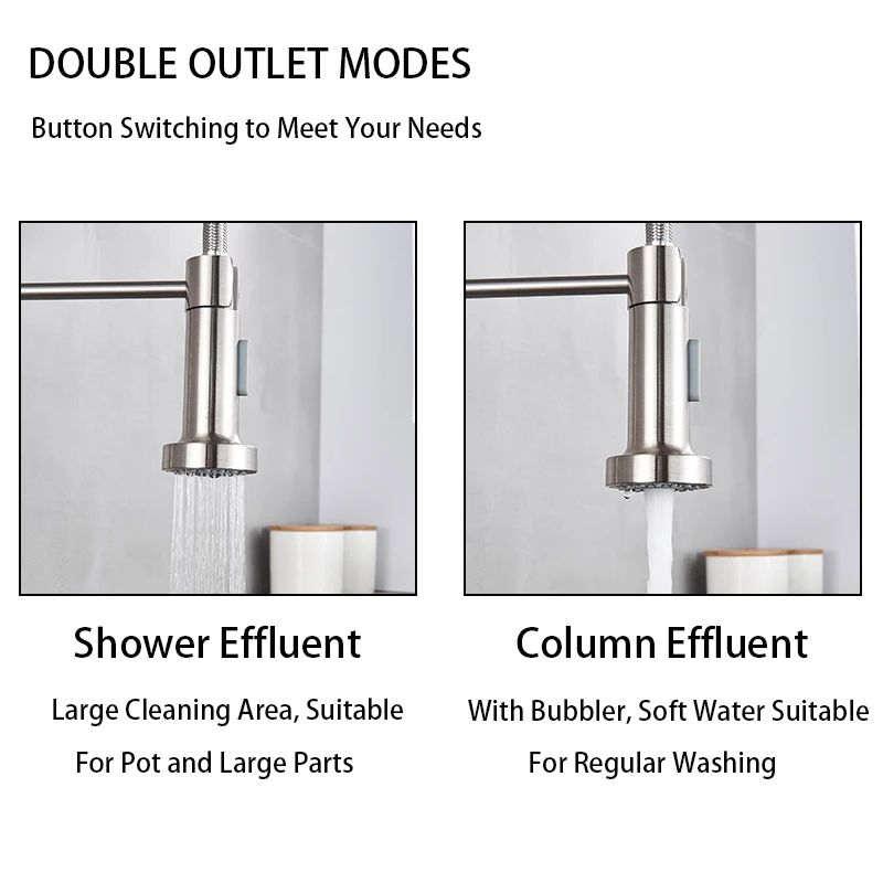 • Dual Modes Nozzle :Equipped with dual modes nozzle, this faucet allows for efficient rinsing and filling of various containers, enhancing your daily routine in the kitchen.