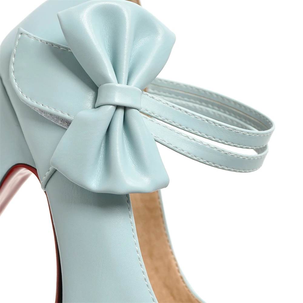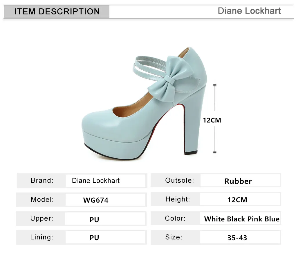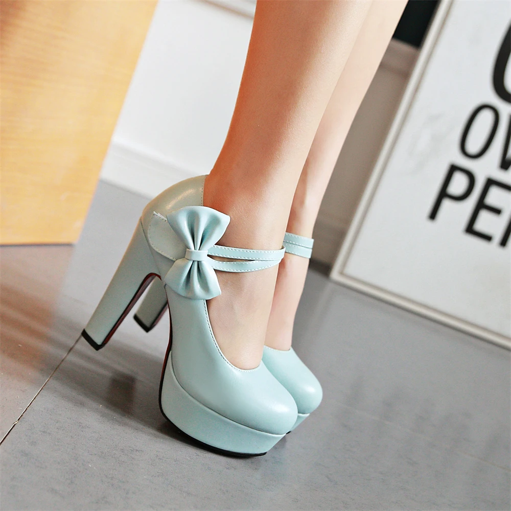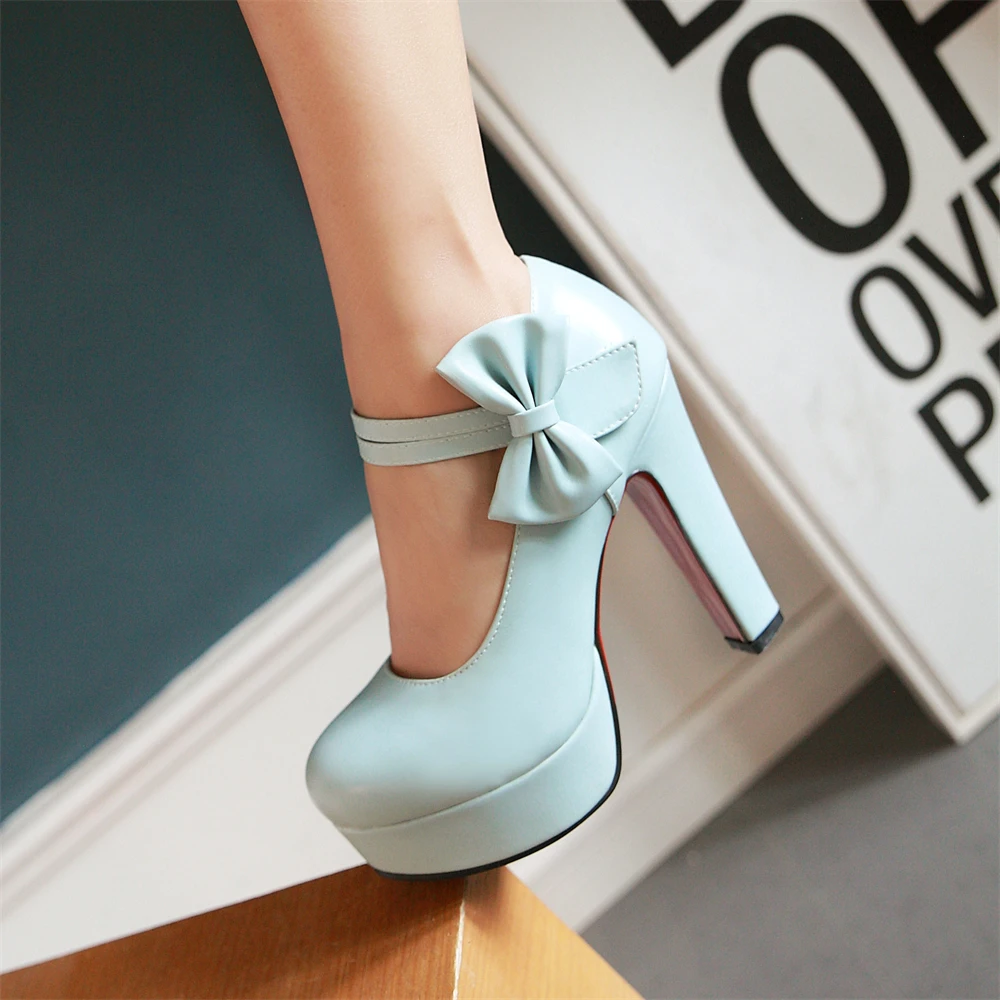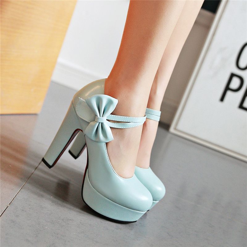 Spring High Heels Women Platform Pumps Ankle strap Shallow Mouth Single Shoes Bow Ladies High Heels White Wedding Women Shoes