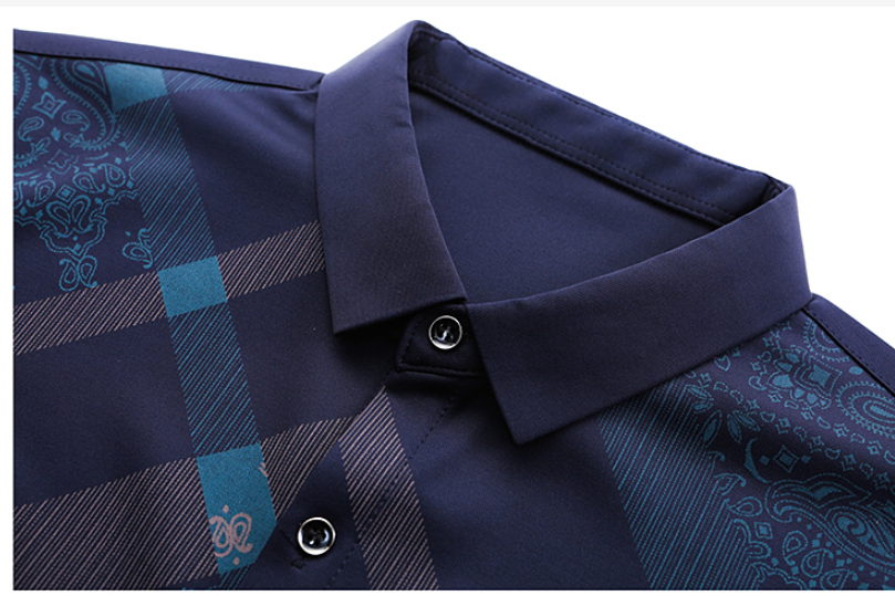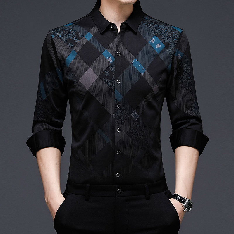 Spring New Men's Long Sleeve Shirt Solid Color Commercial Navy Blue 165
