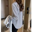 Spring Women's Korean Style New Casual Student Shirt Bottoming Shirt Fashion Loose Long-Sleeved Vertical Striped Shirt 2XL Khaki