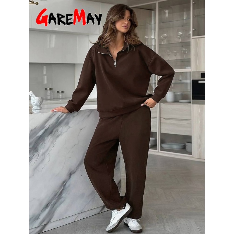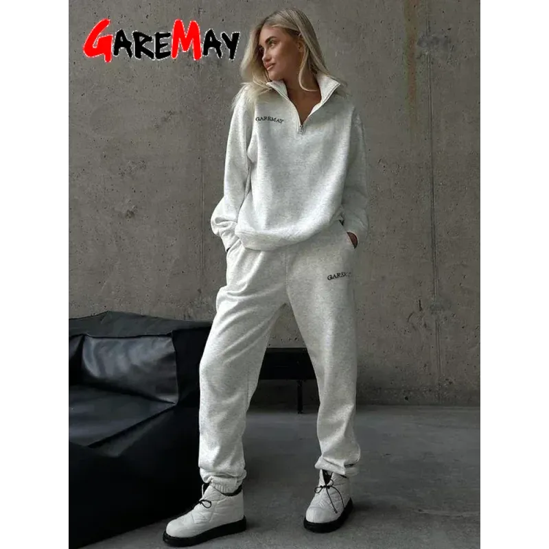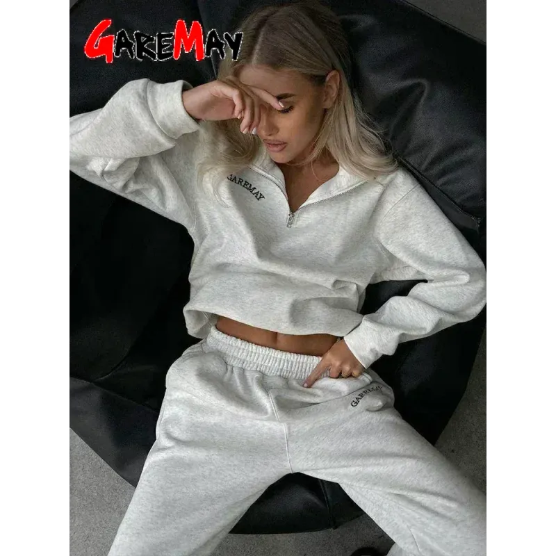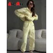 Spring Women's Tracksuit with Zipper Cotton Oversize Classic Pink Two Piece Set Women Casual Yellow Trouser Suits for Women