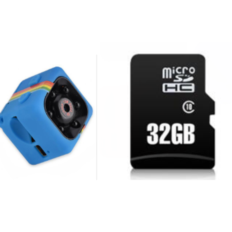 SQ11 Mini Camera HD 1080P Night Vision Camcorder Car DVR Infrared Video Recorder Sport Digital Blue with 32gb