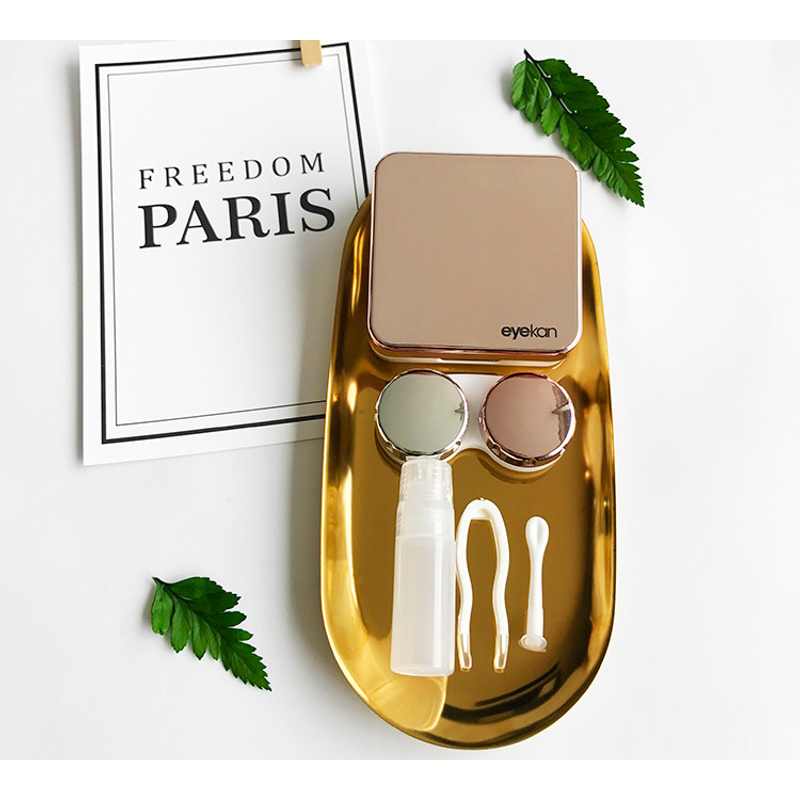 Square Cute Companion Beauty Contact Care Cartoon Tweezers With Mirror Gold