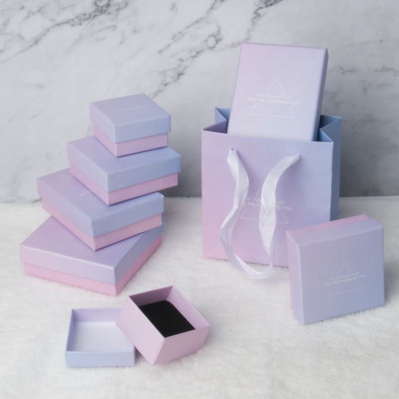 Square Powder Blue Gradient Necklace Earrings Ring Box Jewelry Organizer Storage Gift Box Paper Jewellry Packaging Container