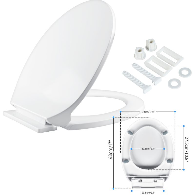 Durable material: The toilet seat is made of high-quality Urea-formaldehyde with the benefits such as stainless, scratchless, and no color fading surface. The product is set for a longer span of use